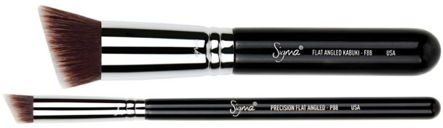 The F88 Flat Angled Kabuki brush and the P88 Precision Flat Angled Brush are similar to the best-selling F80 brush and the P80. What makes them different is the angled tip. Also available are the F82, F84, F86, P82, P84 & P86 with details below.