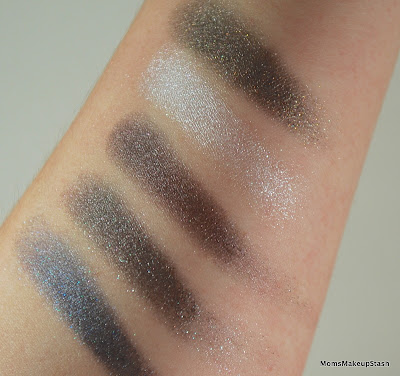 | Diorshow Fusion Mono Eye Shadow Swatches (L-R): Cosmos 281, Aventure 081, Hypnotique 881, Lune 001 & Millenium 381 |