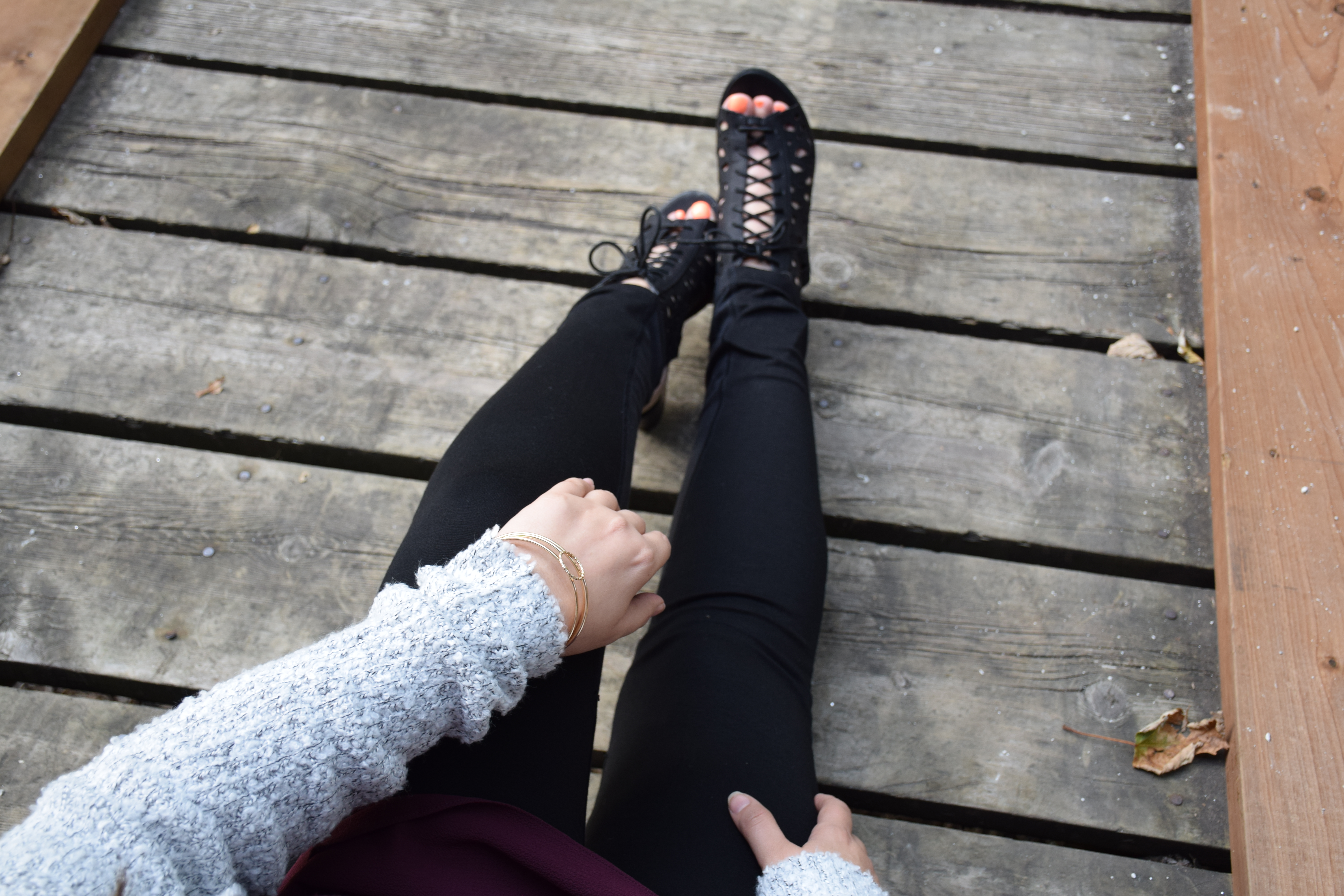 The lace-up sandals ($32.97) are a perfect transition shoe for fall weather. They keep your feet warm (ish) but are open-toed so you can still show off those summer pedicures. They are really comfortable and can easily be worn all day without any pain. Score!
