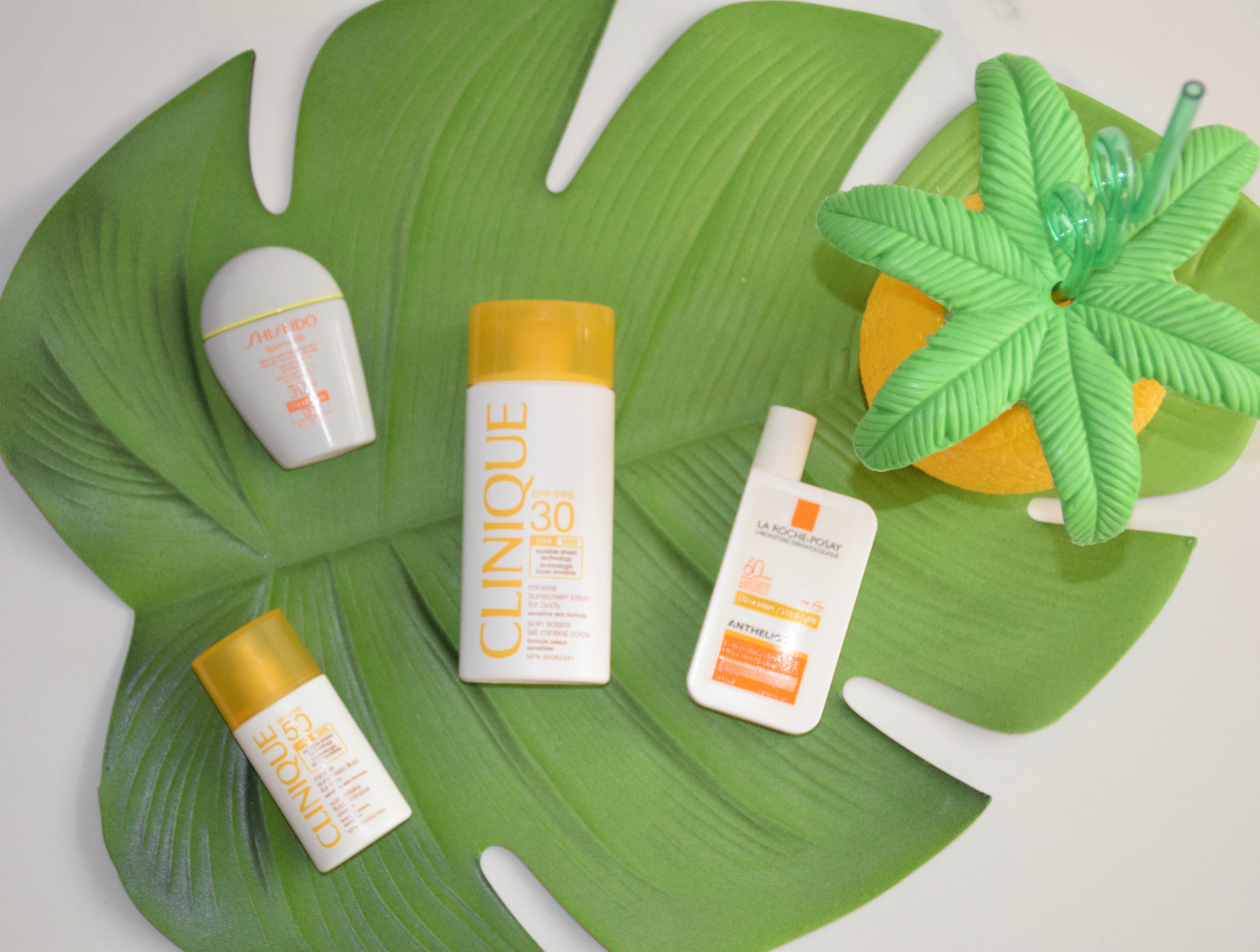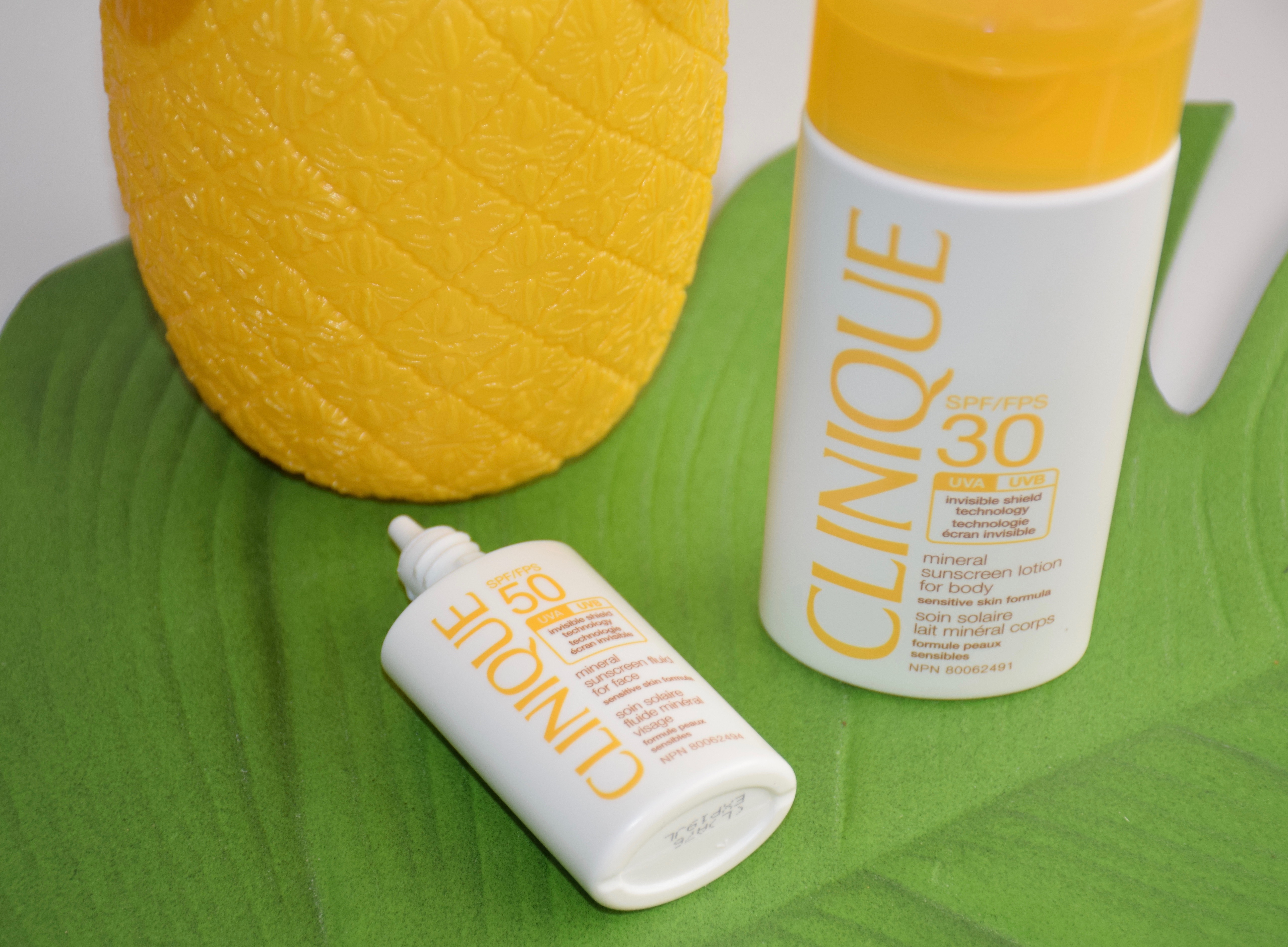 Sunscreen is an absolute must if you plan on spending any time outdoors! As a mother, I keep loads of the stuff on hand and don’t go anywhere without it! Fun fact: Mineral sunscreens (like the Clinique ones shown below) do not get absorbed by the body the same way chemical sunscreens do. Instead, they sit on top of your skin and reflect the sun’s rays and are usually made using either zinc oxide and/or titanium dioxide!